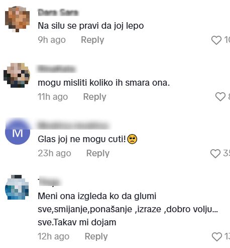 „Na silu se pravi da joj lijepo“, „Mogu misliti koliko ih smara ona“, „Meni ona izgleda ko da glumi sve. Smijanje, ponašanje, izraze ,dobru volju… sve. Takav mi dojam“, pisali su na Tiktoku.