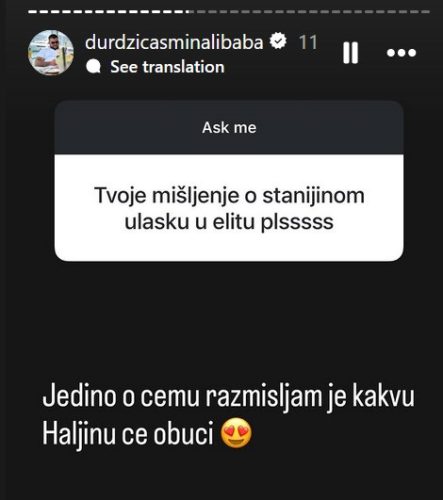 Tako je Durdžić odgovarao na pitanja svojih pratioca na Instagramu, a dva su bila vezana za Staniju i njen ulazak u rijaliti.