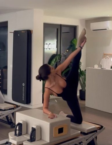 Na svom Instagram profilu podijelila je video-snimak sa časa pilatesa, gdje se može vidjeti kako vježba u uskoj crnoj sportskoj opremi. Outfit koji je odabrala istakao je njenu figuru, a naročito dekolte, što je izazvalo brojne reakcije njenih pratilaca.