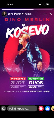 Nikada do sada nijedan događaj u Bosni i Hercegovini nije izazvao ovakvu potražnju. Sve ulaznice za peto Koševo, dugoočekivani stadionski spektakl Dine Merlina u Sarajevu, rasprodane su u rekordnom roku, a novi datum direktan je odgovor na taj nezapamćeni odaziv.