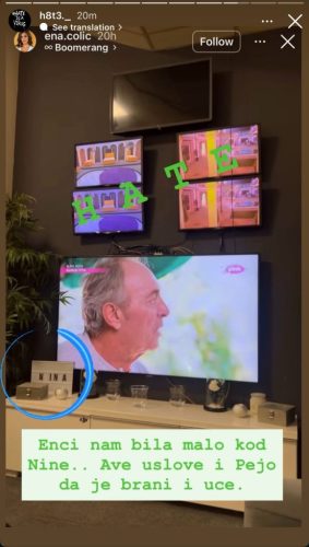 Na samom storiju koji je okačila može se vidjeti kako Ena sjedi u prostoriji u kojoj se nalaze televizori sa strimovima rijalitija, dok se na polici nalazi pločica sa imenom Nina što ukazuje na to gdje se nalazila.