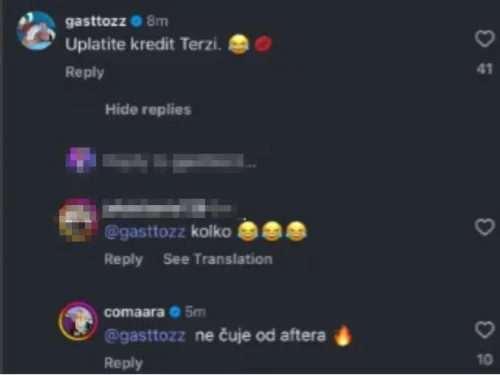 – Uplatite kredit Terzi – napisao je Gastoz.