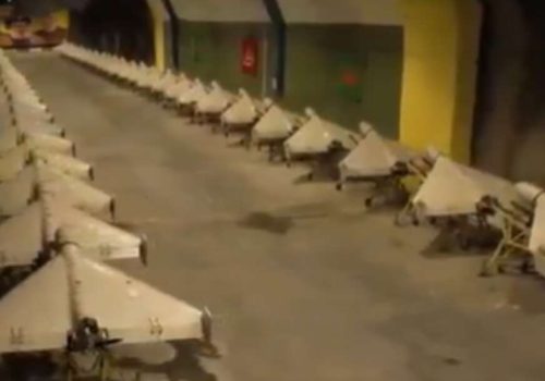 U videu koji je objavila iranska državna novinska agencija Fars, mogu se vidjeti redovi dronova poređani u podzemnom tunelu ili na raketnim bacačima.
