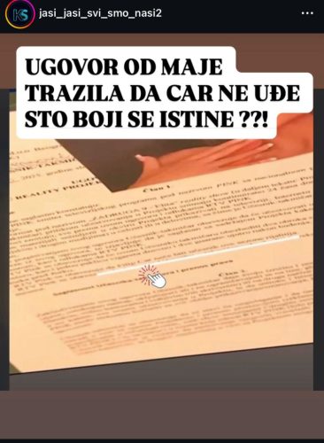Fotografija dijela ugovora, koja se brzinom svjetlosti proširila internetom, otkriva pasus u kom se navodi zahtjev da „Filip Car ne bude angažovan u rijalitiju tokom trajanja učešća Maje Marinković“, što je izazvalo burne reakcije i brojna pitanja među fanovima rijalitija.