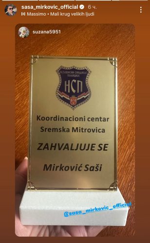 Ovoga puta, zahvalnost mu je uručena od strane Koordinacionog centra Sremska Mitrovica, kao znak poštovanja i podrške njegovom kontinuiranom radu i posvećenosti!