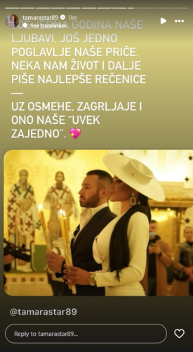 „Još jedna godina naše ljubavi, još jedno poglavlje naše priče. Neka nam život i dalje piše najljepše rečenice – uz osmijehe, zagrljaje i ono naše ‘uvijek zajedno'“, napisala je Tamara uz objavu.