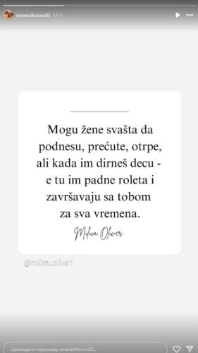 Njena majka, Nina Nićifirović , oglasila se na svom Instagram profilu, te je okačila sliku, s jakom porukom, koja se može protumačiti kao jasan znak da je objavila r*t izabraniku svoje nasljednice.