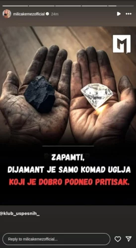 – Zapamti, dijamant je samo komad uglja koji je dobro podnio pritisak – piše u objavi koju je podijelila Milica.