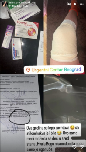 Na svom storiju objavila je fotografije noge u zavoju, lijekova, snimak rendgena, kao i ljekarski nalaz, čime je obavijestila pratioce o svom zdravstvenom stanju.