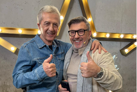 – Moj prijatelj Šerif Konjević i ja na snimanju „Hype zvezda“ – napisao je Miroslav.