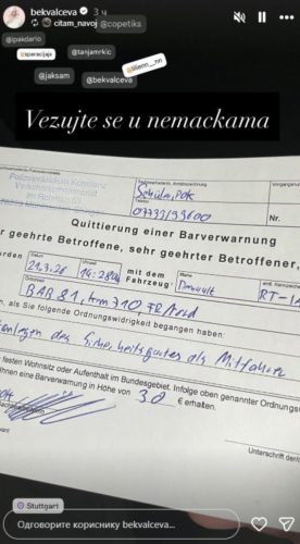 – Vezujte se u Njemačkama – istaknuto je u okviru „storija“ pjevačice, o kojem se uveliko priča.