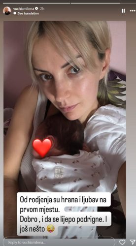 – Od rođenja su hrana i ljubav na prvom mjestu. Dobro, i da se lijepo podrigne. I još nešto – napisala je Milena dirljivo.