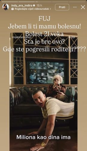 Indira Aradinović, poznatija kao Indi, žestoko je na svom Instagram storiju osudila mladog tiktokera Mijata Stanojevića.