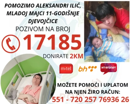 Humanitarno udruženje “Ruka pomoći” pokrenulo je hitan apel za liječenje teško bolesne Aleksandre Ilić, mlade majka 11-godišnje djevojčice.