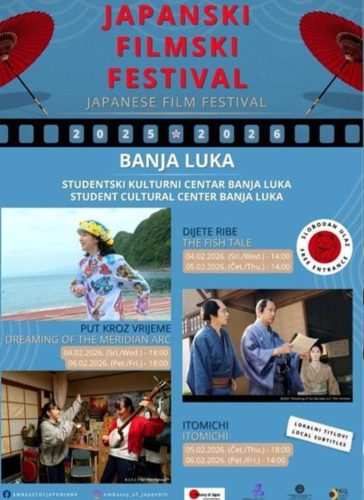 Rukovodilac Studentskog centra Mladen Banjac rekao je Srni da Ambasada Japana od novembra 2025. godine širom Bosne i Hercegovine organizuje Japanski filmski festival i da je Banjaluka posljednja stanica.