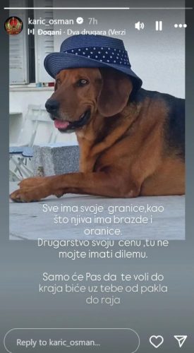 – Sve ima svoje granice, kao što njiva ima brazde i oranice. Drugarstvo svoju cijenu, tu nemojte imati dilemu. Samo će pas da te voli do kraja, biće uz tebe od pakla do raja – napisao je Osman uz pjesmu grupe Đogani, koja nosi naziv „Dva drugara“, te svi misle da aludira na raskol sina i Peje.