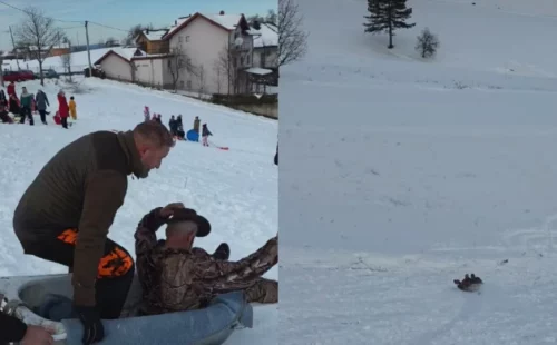Video koji su objavile kolege s GP Maljevac stiže iz mjesta Kumarica kod Velike Kladuše, a u vrlo kratkom roku nasmijao je mnoge. Na snimku se, kako piše, vide “dva jarana kako se sankaju”, ali ne na klasičnim sankama, već ni manje ni više nego u kadi za kupanje.