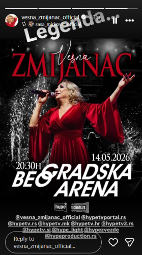 VESNA ZMIJANAC I HYPE PRODUKCIJA PRIPREMAJU SPEKTAKL U BEOGRADSKOJ ARENI! Noć koja će se PAMTITI I PREPRIČAVATI – 14.05.2026. GODINE!