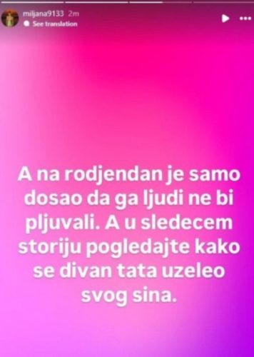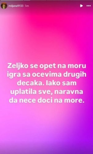 – Željko se na moru opet igra sa očevima drugih dječaka. Iako sam uplatila sve, naravno da neće doći na more. A na rođendan je opet došao da ga ljudi ne bi plj*vali – završila je Miljana.